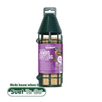 Our reusable feeder is pre-filled with our tasty Jumbo Suet Log. Our jumbo suet logs are premium quality and highly palatable made with proper British beef fat and insects. These logs contain no fillers or carbonate, ensuring the wild birds in your garden are eating only the very best.
