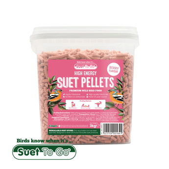 Made in the UK with proper British beef fat and no fillers or carbonate, Suet To Go suet pellets are really tasty. These highly palatable pellets are packed with protein and energy, ensuring the wild birds in your garden obtain all the nutrients they need to thrive. As natural food sources are depleted during the colder months and additional food is required to nurture offspring in the warmer months, these pellets are designed to provide birds with energy all year round.