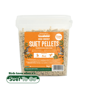 Made in the UK with proper British beef fat and no fillers or carbonate, Suet To Go suet pellets are really tasty. These highly palatable pellets are packed with protein and energy, ensuring the wild birds in your garden obtain all the nutrients they need to thrive. As natural food sources are depleted during the colder months and additional food is required to nurture offspring in the warmer months, these pellets are designed to provide birds with energy all year round.