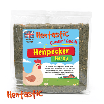 A pecking block with a difference! Our Henpecker is an irresistible pecking treat made with British flour, premium vegetable fat, mixed seeds & peanut butter. Plus, it's packed full of herby goodness for happy, healthy hens!