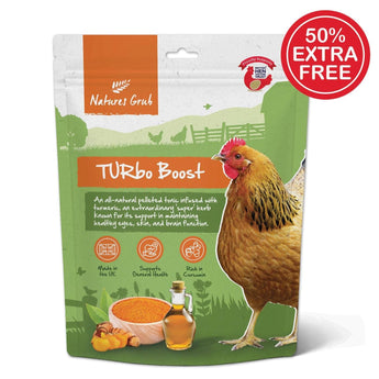TURbo Boost is an easy to feed natural tonic for enhancing well-being. Packed with the powerhouse herb Turmeric, renowned for its skin, eye, and brain health benefits, it's a super boost for your flock's vitality.