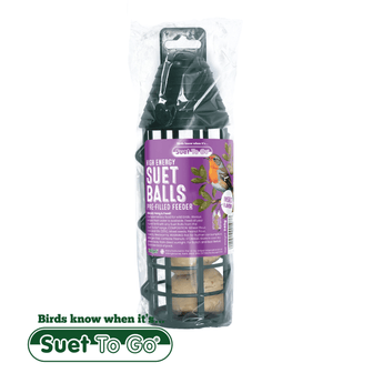 Our reusable feeder is pre-filled with three of our tasty suet balls. Our suet balls are premium quality and highly palatable made with proper British beef fat and insects. These balls contain no fillers or carbonate, ensuring the wild birds in your garden are eating only the very best.