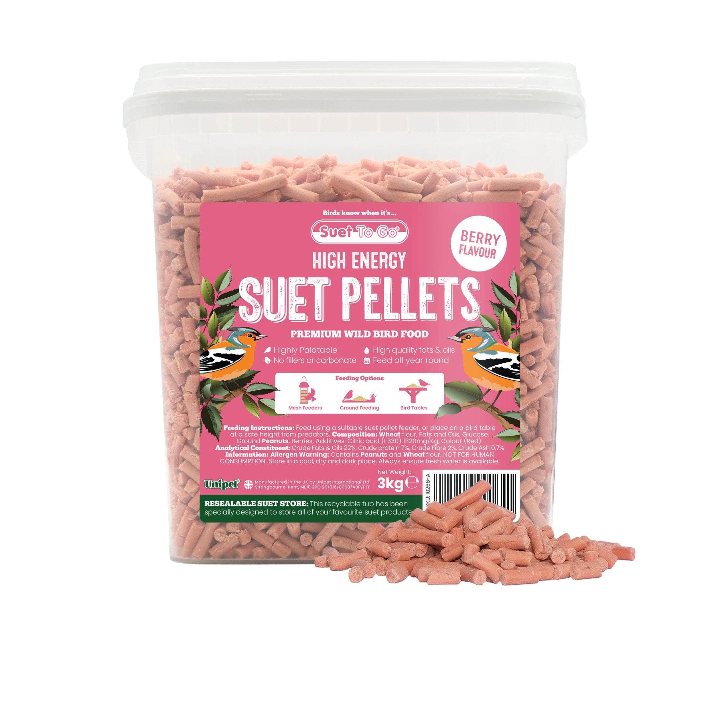 Made in the UK with proper British beef fat and no fillers or carbonate, Suet To Go suet pellets are really tasty. These highly palatable pellets are packed with protein and energy, ensuring the wild birds in your garden obtain all the nutrients they need to thrive. As natural food sources are depleted during the colder months and additional food is required to nurture offspring in the warmer months, these pellets are designed to provide birds with energy all year round.