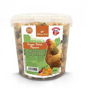 Following our bestseller, Fruit & Berry Popcorn Treat, we bring you Veggie Patch Popcorn. An all natural, fun treat dusted with vibrant carrot powder and loaded with a selection of tasty vegetables, aromatic herbs and fragrant flowers. A blend of flavours sure to have your flock excited!